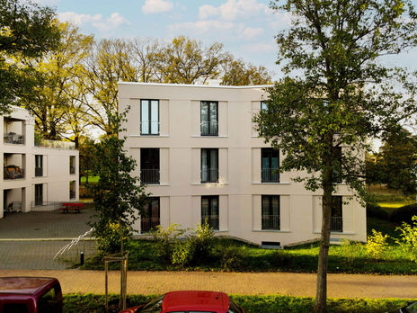 Die Neubauten sind als Vierspänner mit insgesamt 22 Wohneinheiten, 2 Gästezimmern und einem Gemeinschaftsbereich konzipiert.